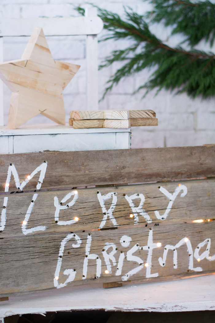 Para ello, pinté las letras con pintura blanca y fui añadiendo la guirnalda de luz. A mi me encanta el efecto de la madera recuperada, ya lo sabéis por aquí, y todo lo que sea de decoración con ella me tiene enamorada.