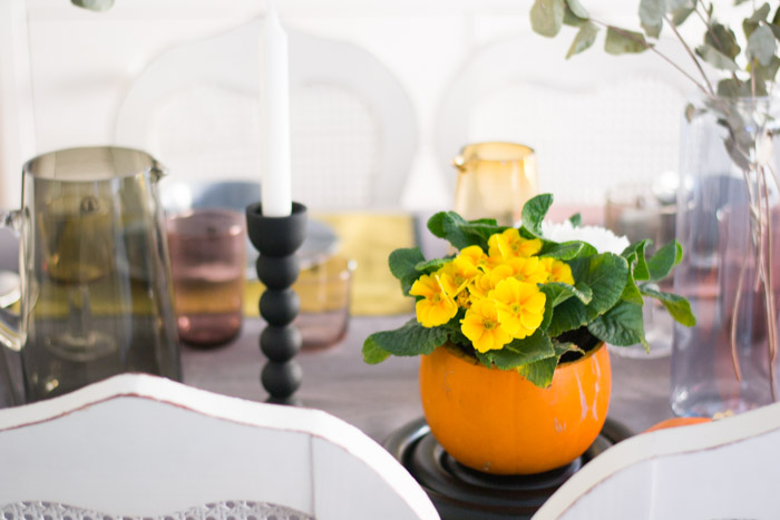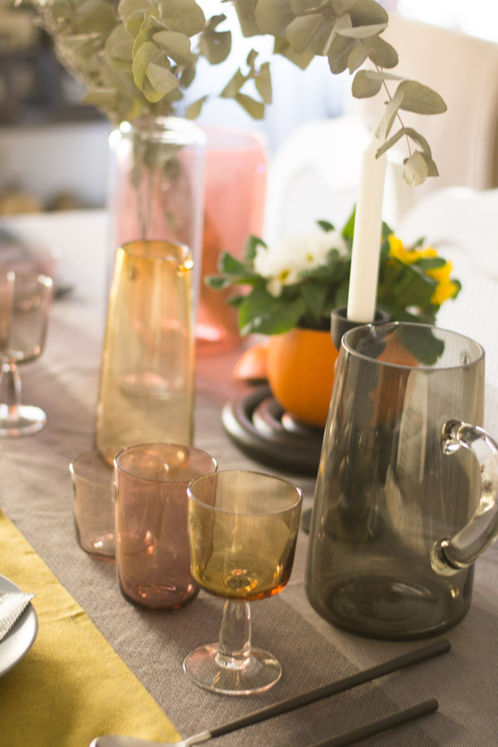 La colección está formada por más de 40 piezas y han sido diseñados para que combinen entre si. Están pensados para una comida o cena del día a día o también para una celebración más formal. Hoy te enseño como he puesto yo la mesa, con algunas de sus piezas y un DIY para decorar con flores nuestra celebración, aprovechando las calabazas que teníamos de Halloween.