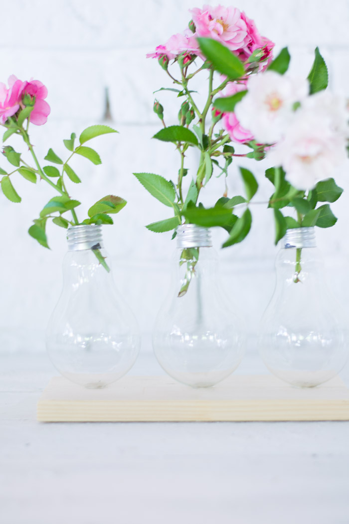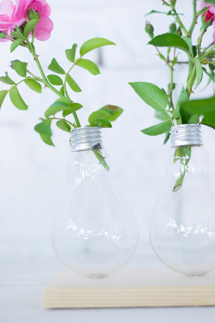 Añadimos agua, nuestras flores favoritas y listo. Ya tenemos un jarrón original y hecho por nosotras.