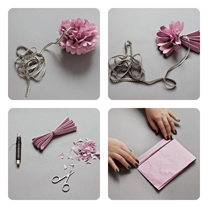 Os he enseñado mil veces estos pompones de seda. Pero no lo puedo remediar me encantan. Yo hice alguno para la habitación de mi retoño, y el Sábado utilice uno para adornar un regalo.