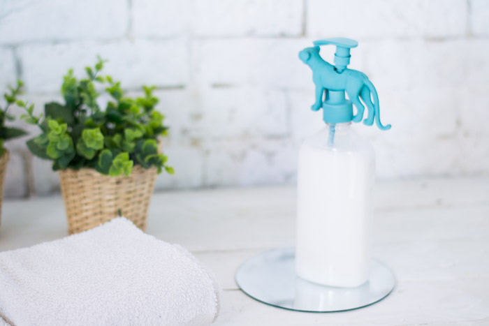 Tan sencillo como coger un juguete de los niños y hacerle un agujero por el que entré el dispensador de jabón. Lo montamos y nos ayudamos de cola para sujetarlo. Pintamos a nuestro gusto ¡¡y listo!! Ya tenemos un dispensador de jabón, original y divertido.