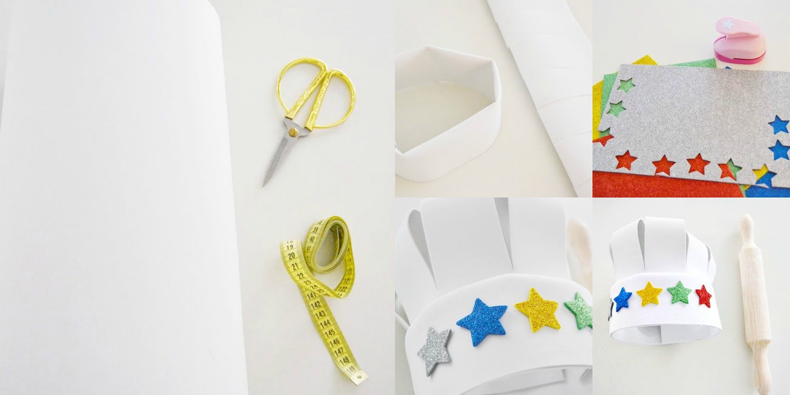 Para decorar, yo utilicé una troqueladora en forma de estrella y goma eva de otro color, para dotar a nuestro gorro de cocinero diy de alguna estrella michelin.