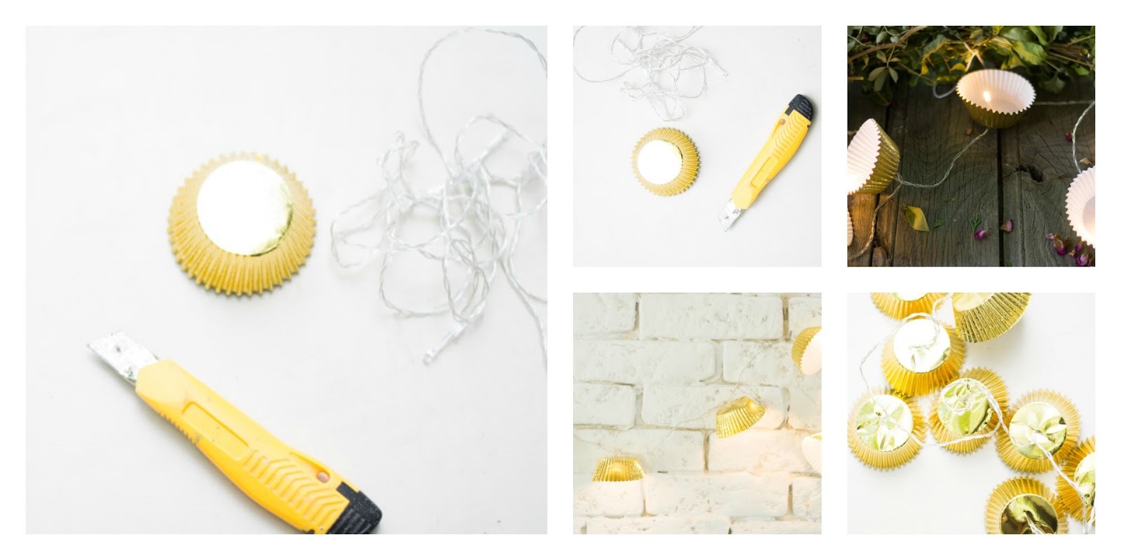 Encontré estos moldes de magdalenas en los típicos bazares que todos tenemos cerca. No lo dudé, y pensé en hacer con ellos una bonita guirnalda de luces.