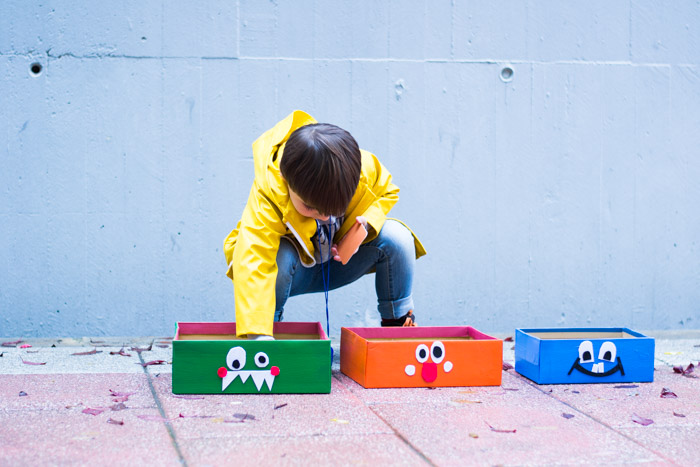 Luego pintamos cada una del color correspondiente a las tarjetas de nuestro juego y dejamos secar. Para darle un toque divertido con un poco de fieltro de colores y pegamento, le añadimos caras divertidas o monstruosas.Una azul con las reglas para ahorrar agua, naranja con las reglas para ahorrar energía y la verde con las reglas para reciclar.