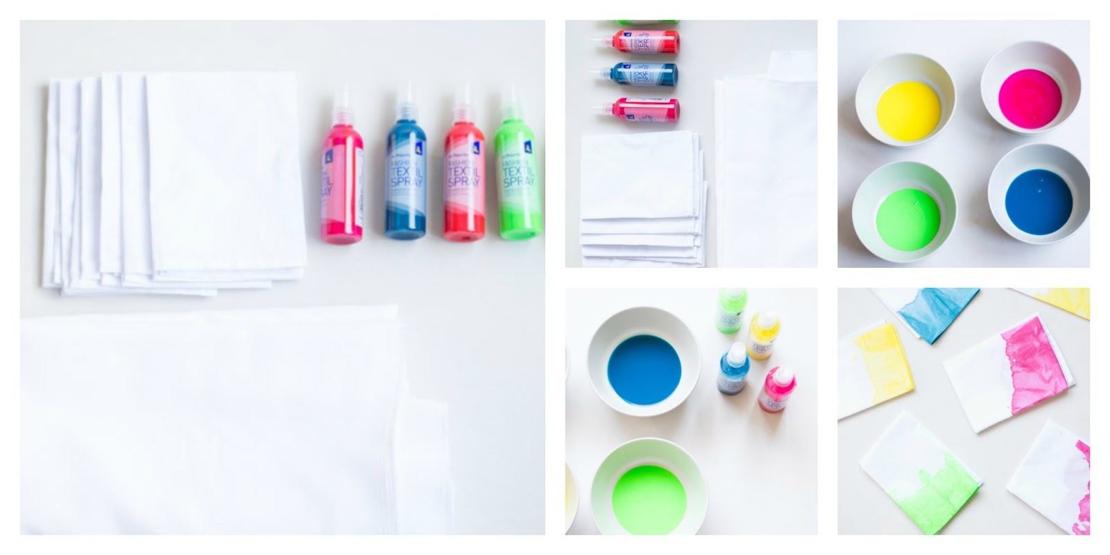 Para todas estas celebraciones veraniegas, hoy te traigo un mantel y servilletas DIY de estilo tie-dyecon pintura en spray para tela.
