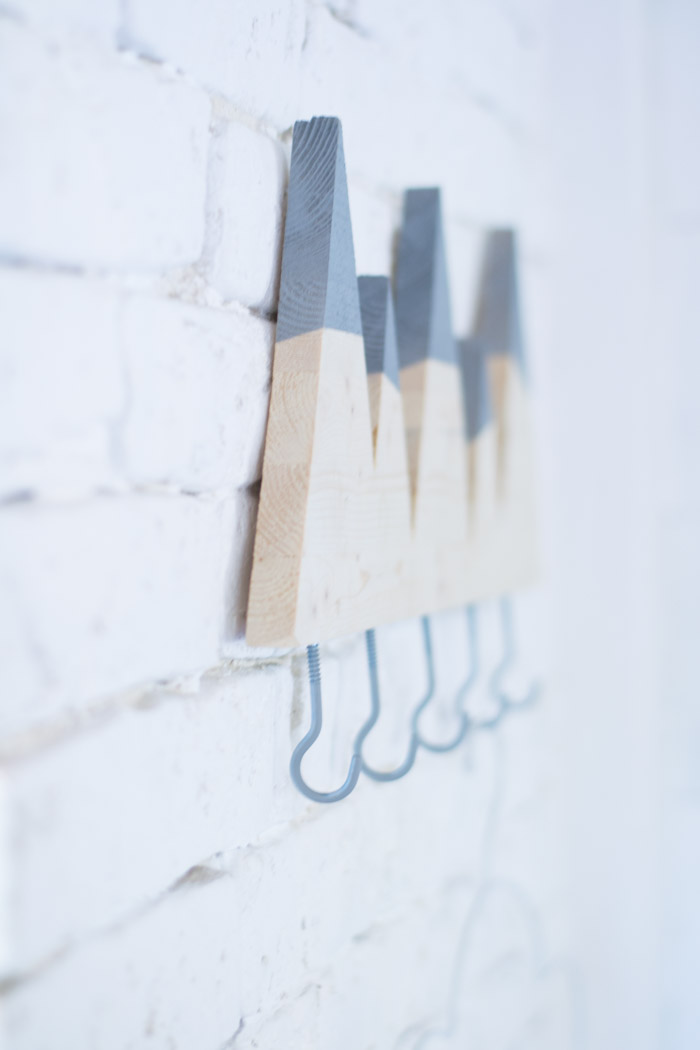 Introduce los ganchos en la parte de de abajo y termina tu perchero, pintándolos del los mismos tonos