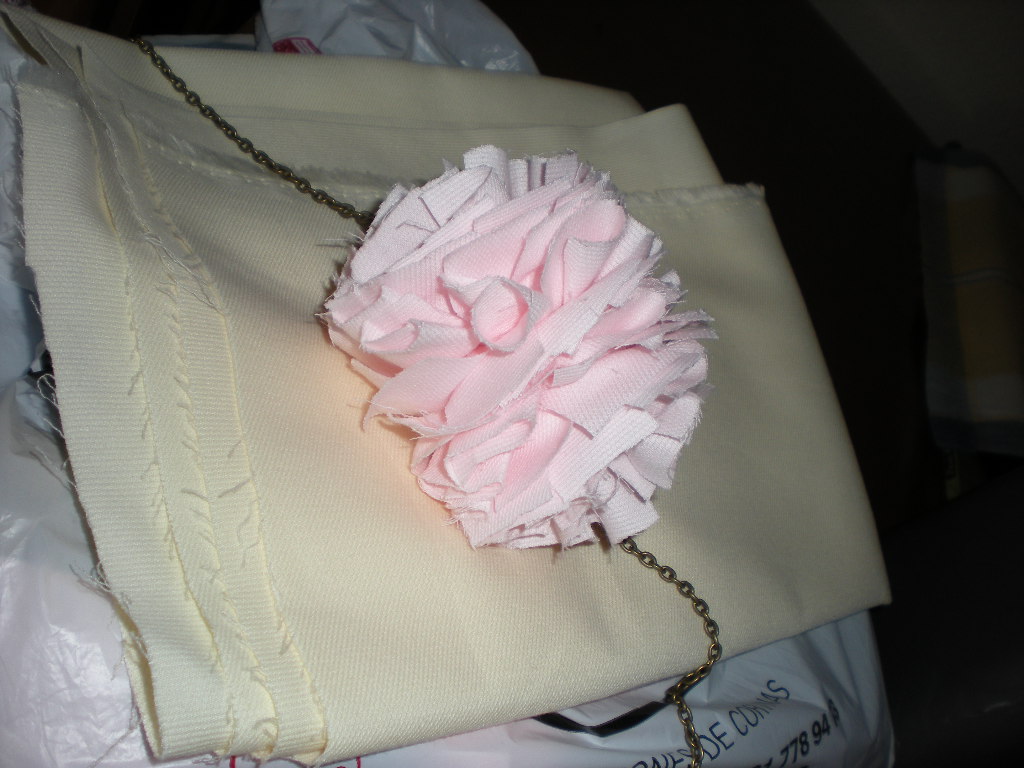 Ah se me olvidaba!!! Para ensartarlos en la cadena es mejor que lo hagas antes de la "metamorfosis a pompón". A ver , me explico, antes de recortar los aros pasa la cadena por el agujerito, depues recortas los aros y atas los pompones con la cadena ya pasada por el centro, ayyy no se si se me entiende, que agonía… yo me cargué el primer pompón por que no había tu tia de pasar la cadenita por el centro, y cuando por fin lo conseguí, el pompón se quedó "tooo esmelendrao" porque con la cadena arrastre la mitad de los hilos.