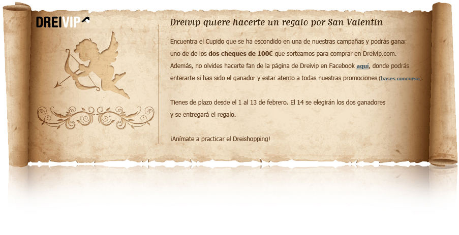 Ya que se acerca el día de San Valentín Dreivip nos da la opción de ganar 2 vales de 100€ para gastarnos en su web, y así poder conseguir un regalo o bien para nosotras mismas, a través de su Web, sin movernos de casa, y comprando productos de primeras marcas, a precios muy buenos.