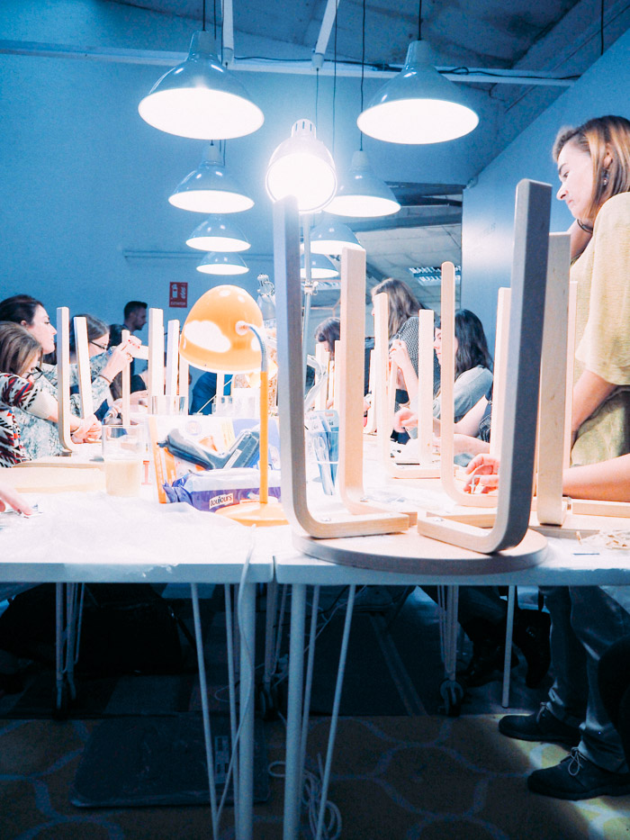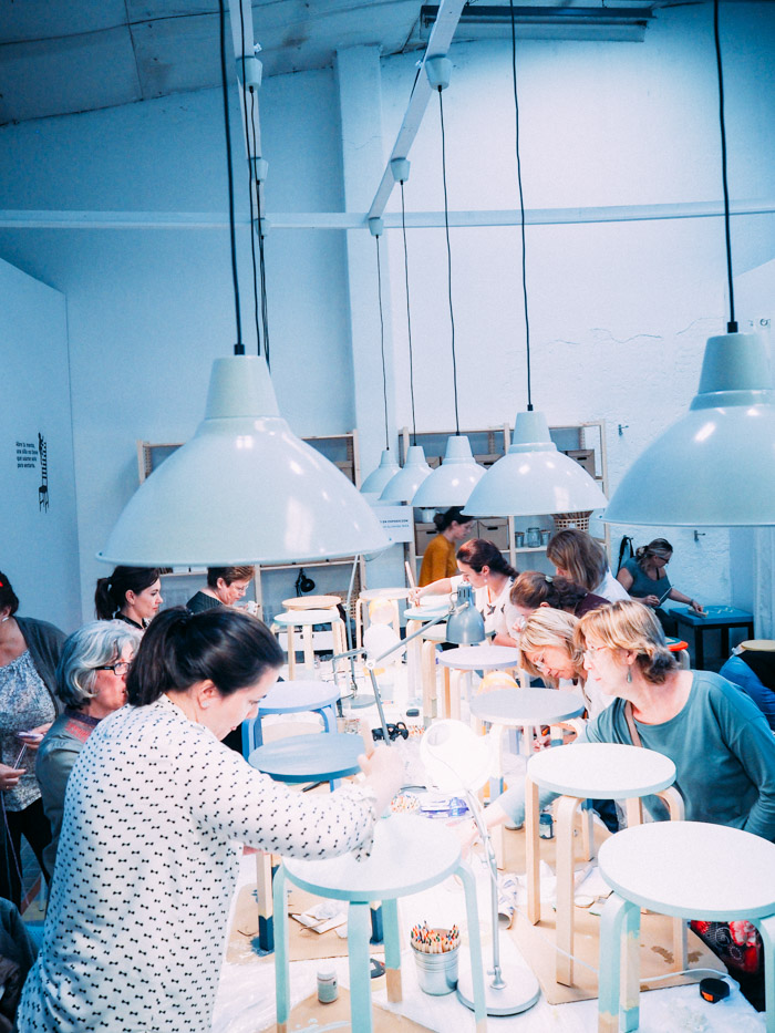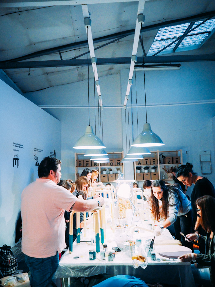 Los dos talleres que yo impartí consistían en lo mismo y era customizar un taburete frosta. Yo lo pinté todo, dejando un trozo de patas sin pintar y luego lo decoré con algunos pompones.Lo disfruté muchísimo y tuve dos grupos de personas geniales. En este tipo de talleres siempre me impresiona que al final somos todos tan distintos y cada uno hace el mueble o DIY totalmente a su estilo. Llevé algunos ejemplos que encontré en Pinterest y sirvieron de ayuda para que la imaginación y el talento de cada uno, saliera a relucir.Fue una experiencia maravillosa y muy enriquecedora y mil gracias a Ikea y al equipo de Handbox por contar conmigo.